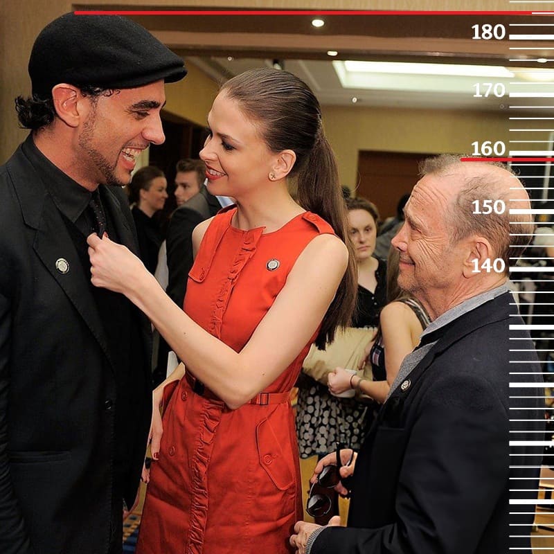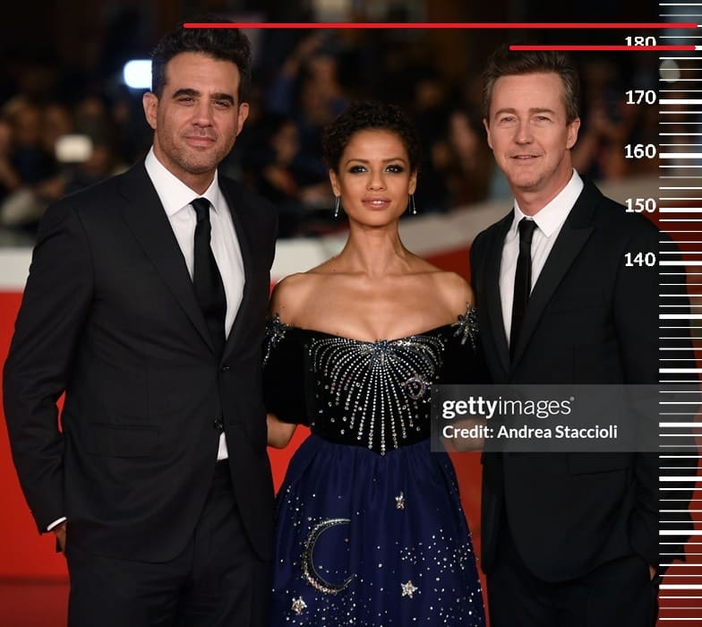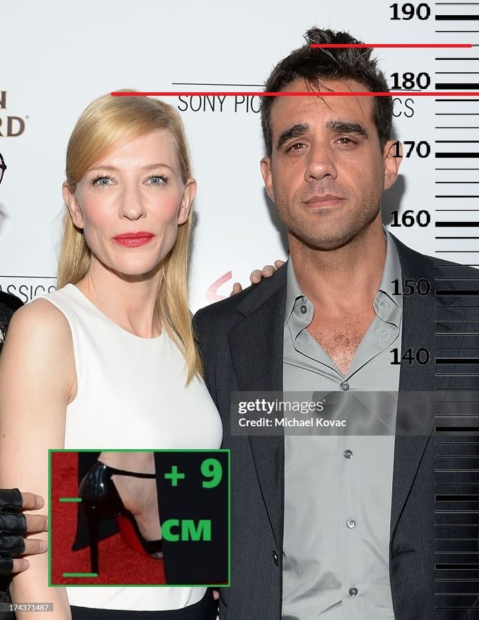 Рост Кейт Бланшетт также не превышает 170 сантиметров, но в данном случае из-за каблуков она будет 179 сантиметров. Здесь рост Бобби Каннавале будет уже 186 сантиметров, но при вычете обуви эта отметка также не превысит 184 сантиметра.