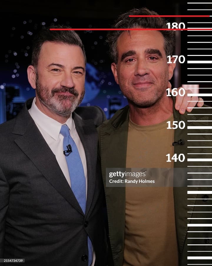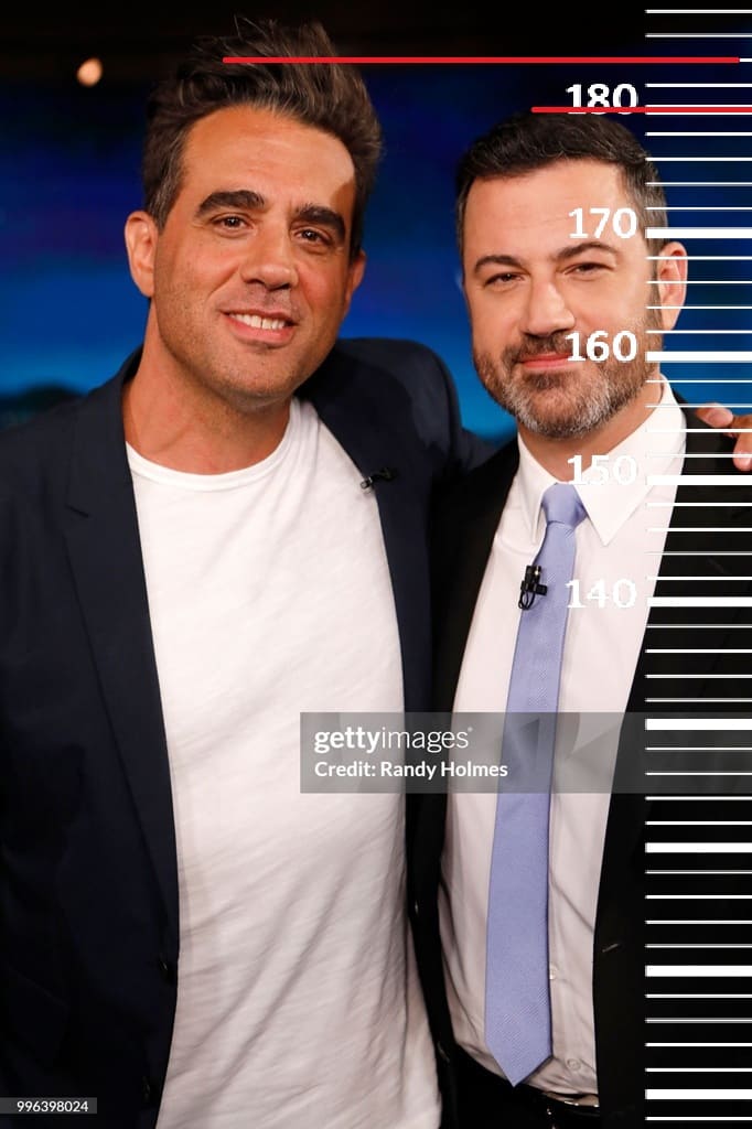 Джимми Киммел(1,2 фото), Тони Голдуин(3 фото) и Эдвард Нортон(4 фото) имеют одинаковый рост по 180 сантиметров каждый. Во всех случаях рост Бобби Каннавале будет вновь на отметке в 184 сантиметра.