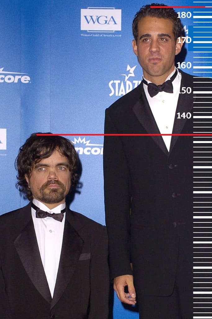 Напоследок, сравним Бобби Каннавале с Питером Динклэйджем, максимальный утренний рост которого равен 133 сантиметра. Здесь ситуация не меняется, и рост Бобби будет также 184 сантиметра.