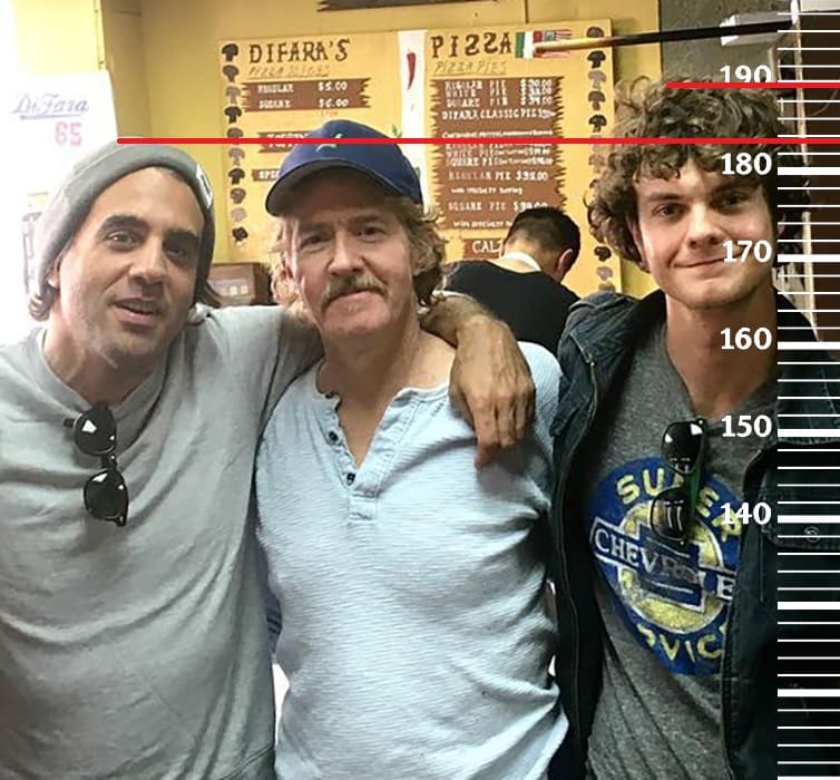 Кристофер Макдональд(1 фото) и Пит Дэвидсон(2 фото) немного выше, а именно по 186 сантиметров каждый. В обоих случаях рост Бобби Каннавале будет на отметке 184 сантиметра.
