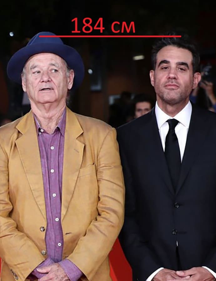 На фото Билл Мюррей, рост которого максимум 184 сантиметра с утра. Как можем видеть, он и Бобби Каннавале абсолютно одного роста.