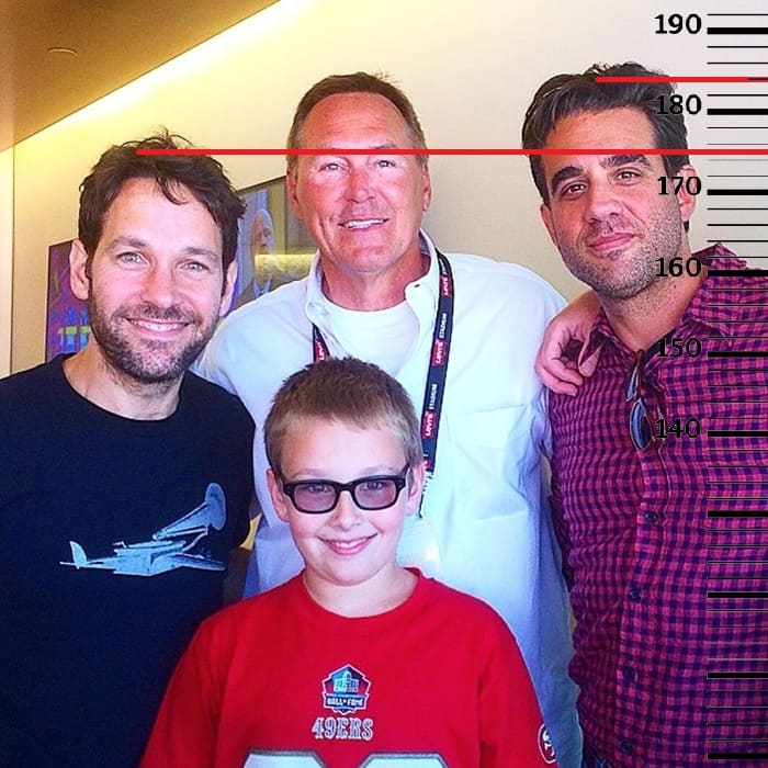 Рассмотрим фото, где сравним Бобби Каннавале с Полом Раддом, рост которого достигает максимальной отметки 175 сантиметров. Здесь рост Бобби также держит за собой отметку 184 сантиметра.